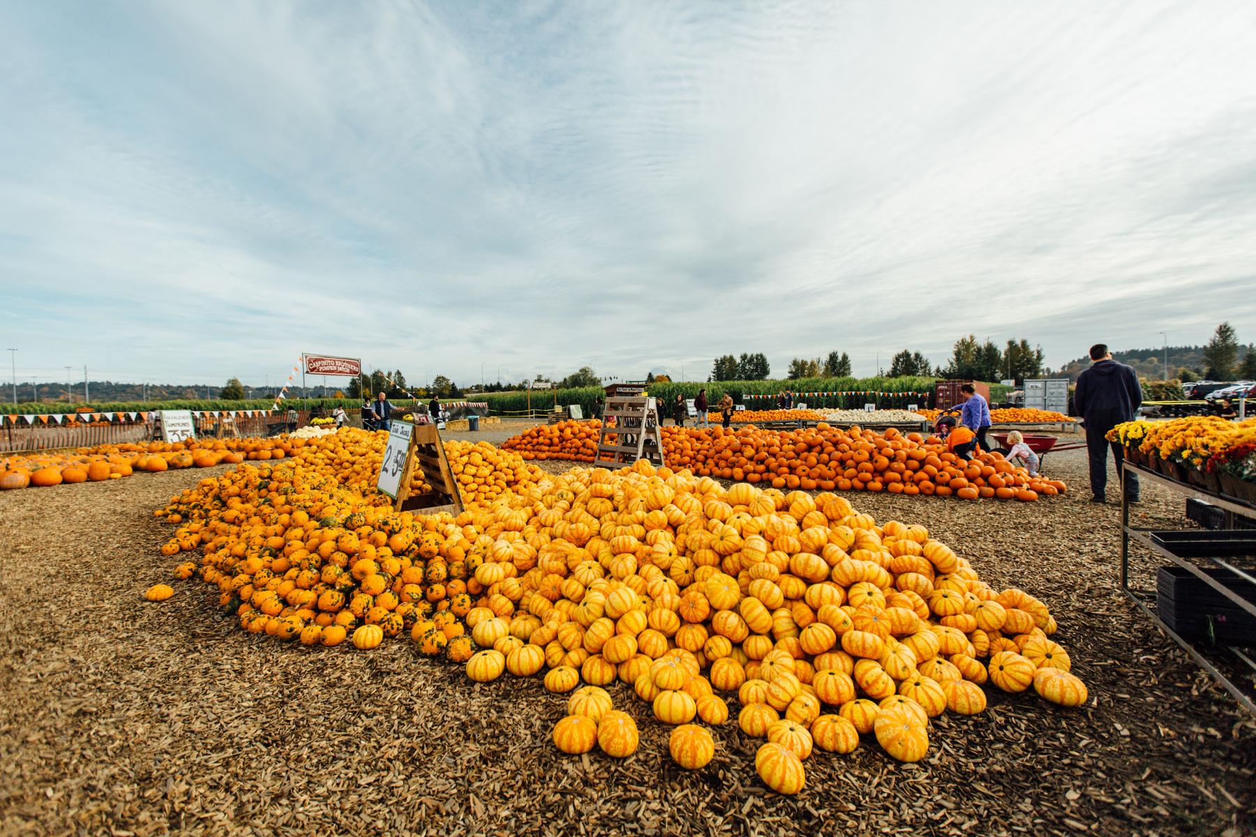 We provide wheelbarrows to aid your pumpkin search. These gourds can get quite heavy! With 20+ acres of farmland & our almost endless crop, there's sure to be the perfect pumpkin for every jack o' lantern, pumpkin pie, & centerpiece in the Puget Sound area. No pets please.